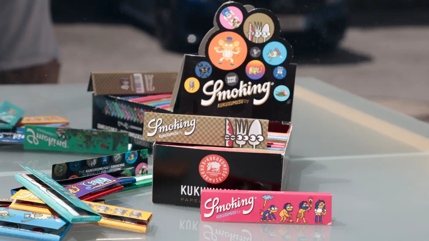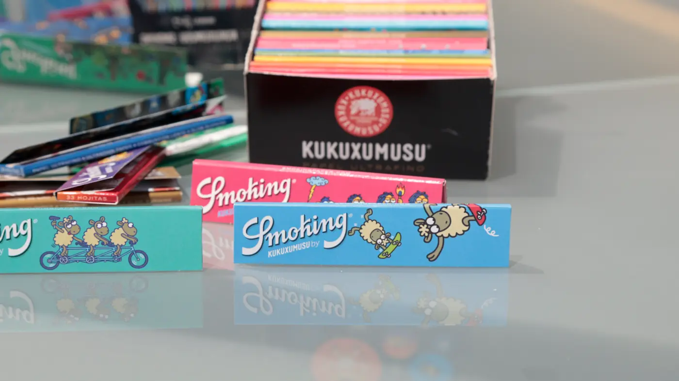Original Smoking Kukuxumusu slim Papers!Jetzt neue Motive! Lass dich von der neuen Smoking Kukuxumusu - Collection überraschen! Smoking Kukuxumusu Papers sind ultradünne hochwertige Blättchen aus Spanien.Diese ganze besondere Smoking-Serie wurde von den spanischen Designern Kukuxumusu mit lustigen Motiven versehen. Die Motive sind auf der Packung aufgedruckt, die Blättchen bleiben im normalem Weiß.Für Sammler und Blättchen-Liebhaber bestens geeignet. Jedes Heft enthält 33 Blättchen. Maße: ca. 110x44 (slim) Flächengewicht: 13g/m2